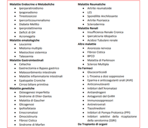 - b) le osteoporosi secondarie causate da un ampio numero di patologie e di farmaci.